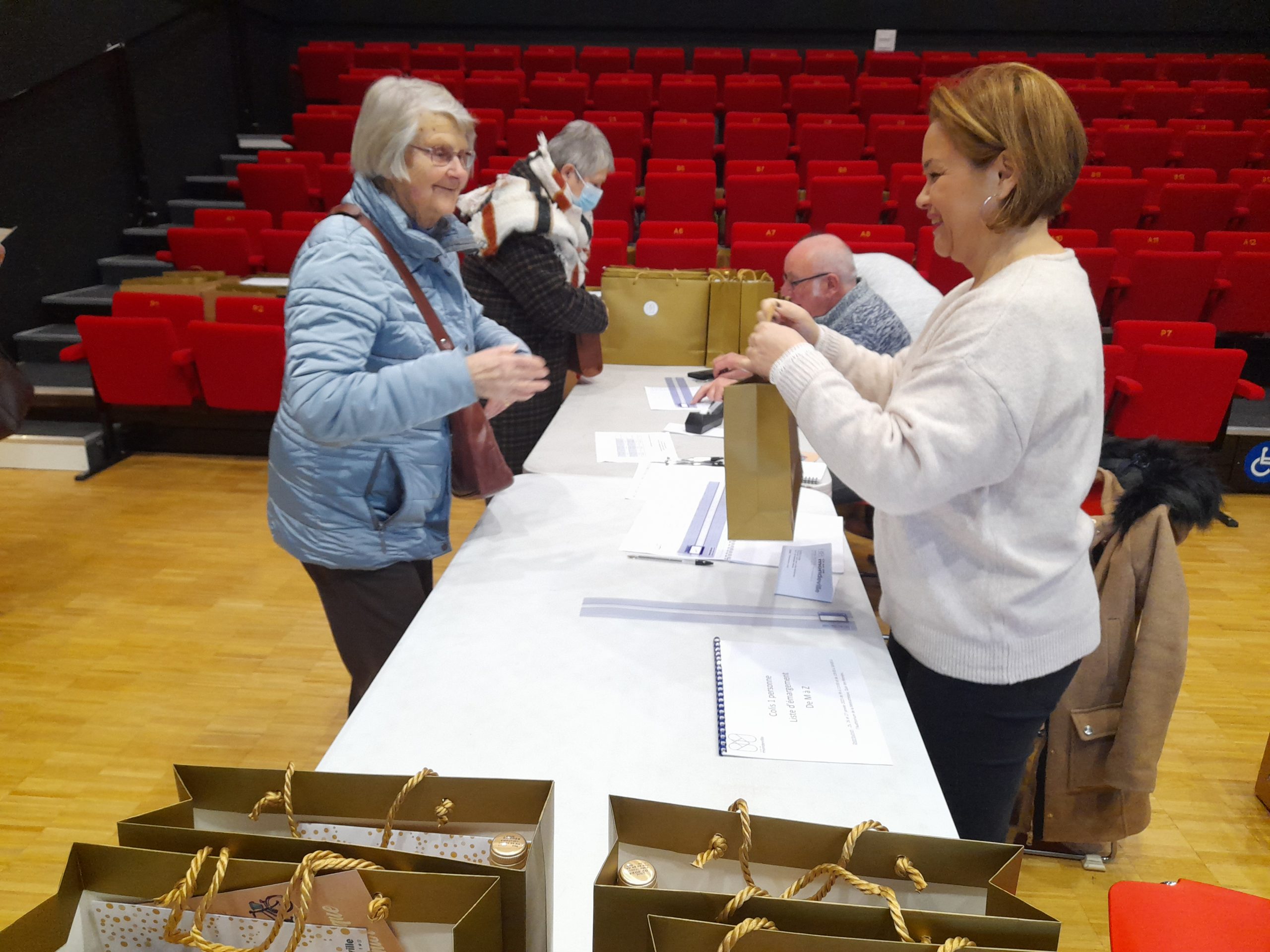 Comme l’année précédente, la Ville a fait le choix d’un colis gourmand garni de produits de qualité. Les cadeaux ont été assemblés et disposés avec attention par les membres de la Coop 5 pour 100.